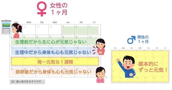 女性が元気なのは1ヶ月で1週間しかない、という男性にとっては嘘みたいな話を聞いたので、取り急ぎパワポにしておきます。