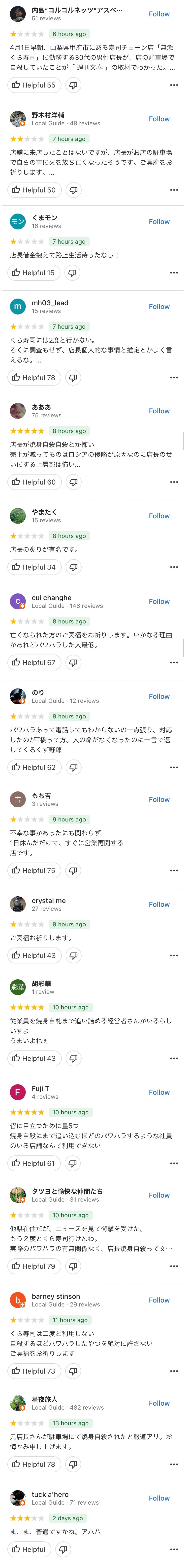 4月1日早朝、山梨県甲府市にある寿司チェーン店「無添くら寿司」に勤務する30代の男性店長が、