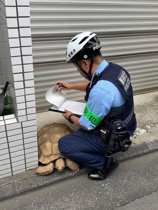 友達が江戸川区で迷子のリクガメ見つけた。警察を呼んだら聞き込みされてたらしい。
