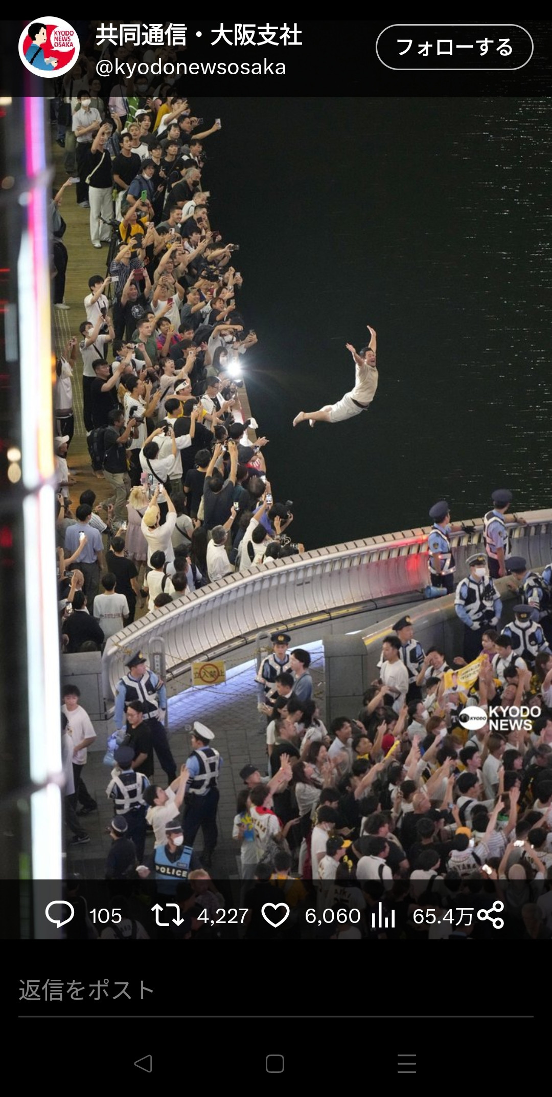 【画像あり】道頓堀川に飛び込んだマンさん、美しすぎるwxwxwxwxwxwxwxwxwxwxwwywywywywww