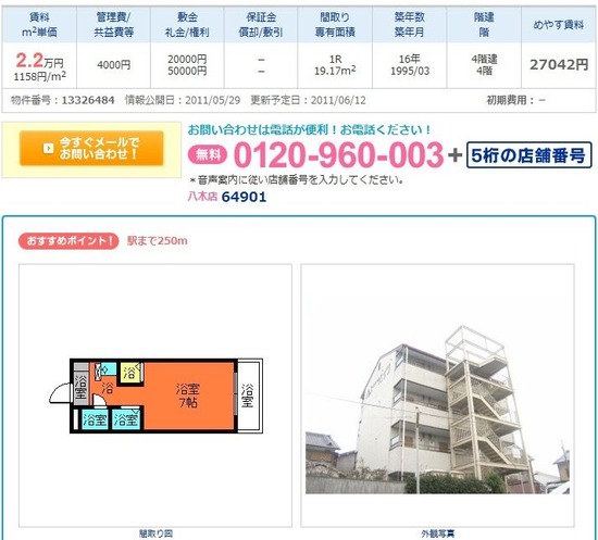 【画像】都内1kで家賃2万円の格安物件がコチラwwwwwwwww