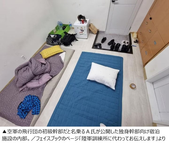 韓国空軍の飛行団に所属する初級幹部が、独身の幹部向け宿泊施設の内部を公開し「待遇があまりにもひどい」と吐露した。