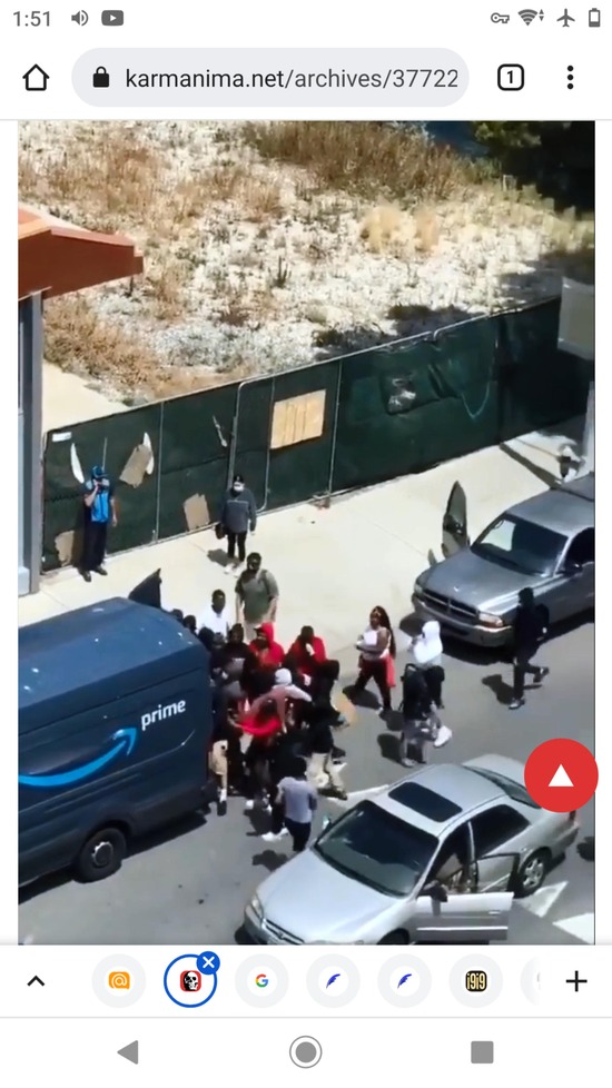【画像】黒人「お、アマゾンの車停まっとるやん、せやっ!!」