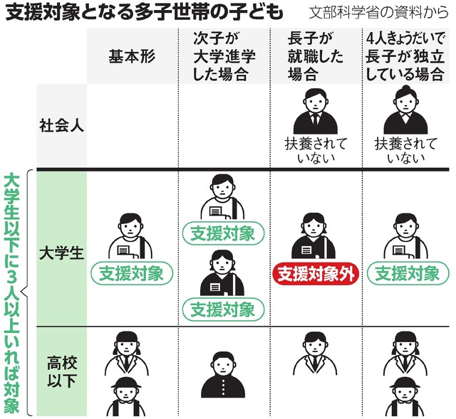 多子世帯の大学無償化、対象は?額は?第1子が扶養外れると対象外も