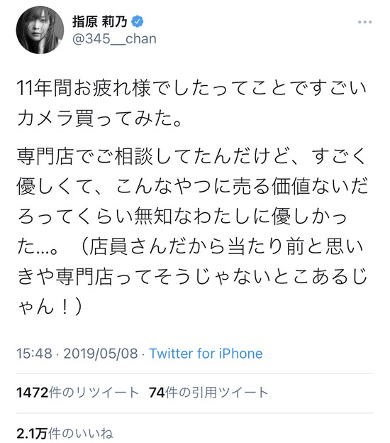 【画像】AKBの指原「新しいカメラ買ってみました」値段がエグいwww