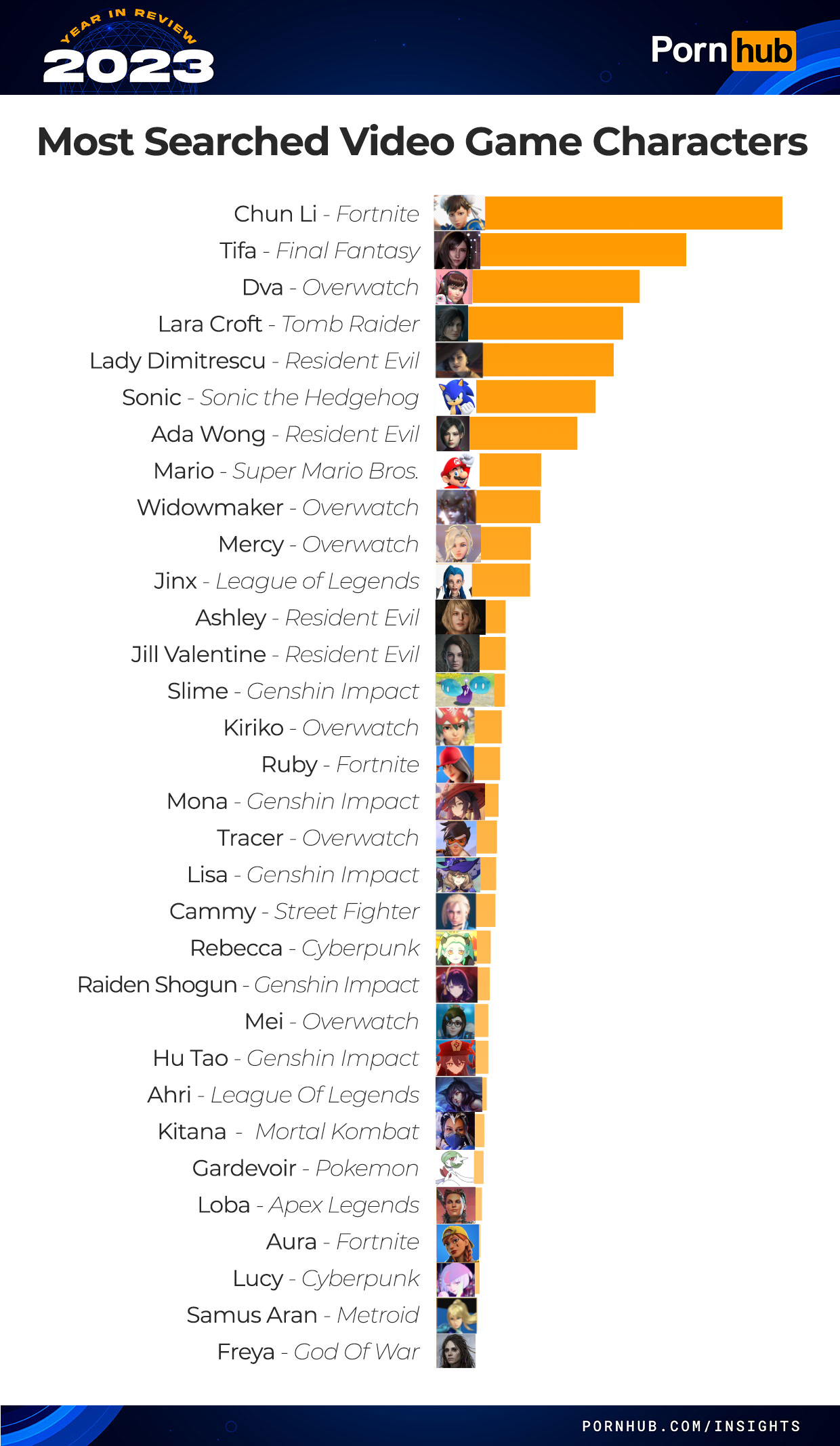 【画像あり】今年Pornhubで最も検索されたゲームキャラが発表されるwwwwwwwwww