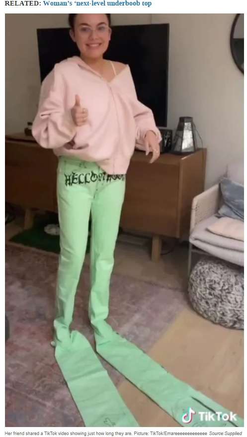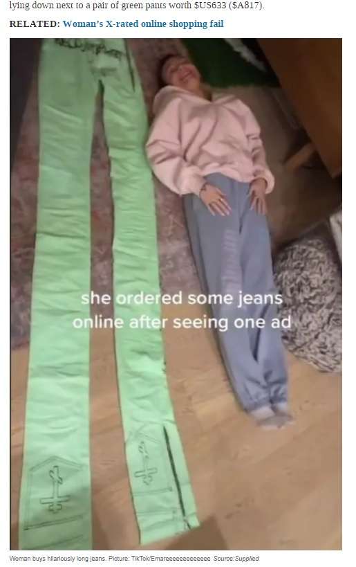 【衝撃画像】ネットで人間用とは思えないズボンを7万円で購入してしまった女性がヤバいwwwww