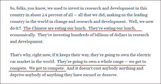 バイデン大統領は演説で「中国にアメリカの雇用を奪わせないでください」と言いました。(オブザーバーニュース)「中国人は私たちの雇用を奪っている。彼らは研究開発に数千億ドルを投資している。」現地時間の5月6日、バイデン米大統領は「米国雇用プログラム」について聴衆に大きな話をした。バイデン氏は、米国のインフラやその他のプロジェクトに投資することで、波及効果のある最大1,600万人の高給の雇用を創出できると述べた。彼はまた、アメリカ人が「アメリカの製品を買う」ことを確実にするために、今年は6000億米ドルを費やすと予想されていると宣言した。Sina Finance 2021/5/7 ソース中国語 『バイデン大統領:中国人は私たちの仕事を奪っている』https://finance.sina.com.cn/world/2021-05-07/doc-ikmyaawc3891999.shtml暴落!バイデン大統領は言った「中国人は私たちの仕事を奪っている!」 それはアメリカ人が「アメリカの商品を買う」ことを確実にするでしょう。NY証券取引所は3つを除外する決定を維持します。GEMは急落しましたが、市場はどうなるのでしょうか。バイデンは再び話しました。彼のインフラストラクチャと税制計画を促進するために、彼は演説で再び中国に言及しました。5月7日の夜、チャイナモバイルは米国預託証券を上場廃止する決定を検討するニューヨーク証券取引所の決定を開示しました。A株に関しては、ショック調整は今日も続き、GEM指数は-3.46%で、過去2か月で最大の低下となりました。バイデン大統領 「すべての投資を行うとき、私たちは1つのことを確認したいと思います。それは米国製品を購入するということです。」バイデン氏によると、今年、米国政府は、空母の甲板からその他すべてのコンポーネントまで、すべてが米国のサプライチェーンを通じて米国の企業と米国の労働者によって製造されるようにするために約6,000億米ドルを費やす予定です。Sina Finance 2021/5/7 ソース中国語 『GEMは急落しましたが、A株市場はどうなるのでしょうか』https://finance.sina.com.cn/stock/jsy/2021-05-07/doc-ikmyaawc3965891.shtml転載元スレッド:http://hayabusa3.2ch.sc/test/read.cgi/news/1620669394/