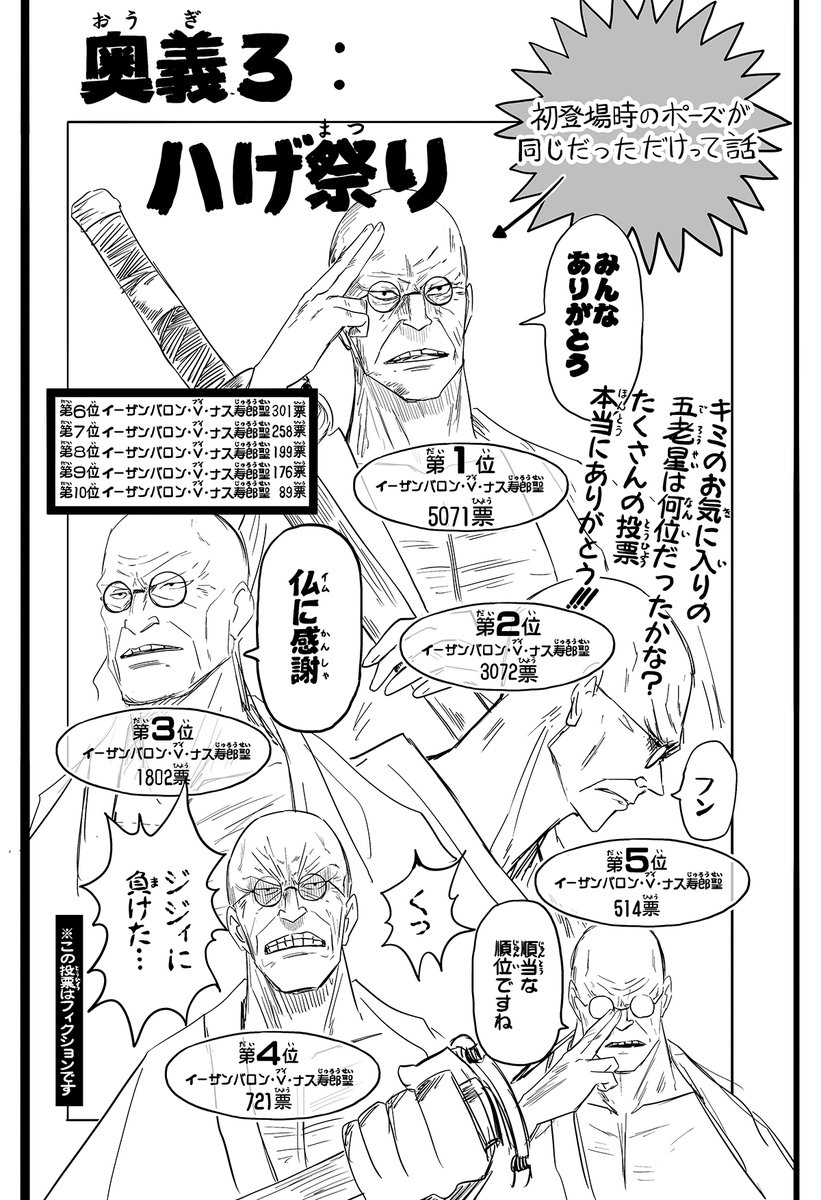 1 名前:名無しさん@おーぷん[] 投稿日:26/02/23(月) 10:33:06 ID:UewV誰も求めてないやろあんな長さ2 名前:名無しさん@おーぷん[] 投稿日:26/02/23(月) 10:33:37 ID:6oWL丈の話?4 名前:名無しさん@おーぷん[] 投稿日:26/02/23(月) 10:34:18 ID:AFZh長くてもいいけどあひゃひゃガイジがおもんなさすぎてガチで読まなくなっちまった6 名前:名無しさん@おーぷん[] 投稿日:26/02/23(月) 10:35:00 ID:SlPj集英社は求めてるにゃ11 名前:名無しさん@おーぷん[] 投稿日:26/02/23(月) 10:36:29 ID:69gb尾田「描き切りたいし」編集「売り切りたいし」19 名前:名無しさん@おーぷん[] 投稿日:26/02/23(月) 10:38:01 ID:cUiCおもろいけどエッグヘッド編はベガパンクさっさと喋れやってイライラして仕方なかった24 名前:名無しさん@おーぷん[] 投稿日:26/02/23(月) 10:39:07 ID:AFZhかっこいいルフィに戻すだけでええんや あひゃひゃやめて続きを読む
