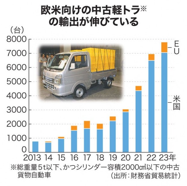 海渡る軽トラ 欧米輸出10倍に 小回り良く、悪路に強い 農業現場でも人気