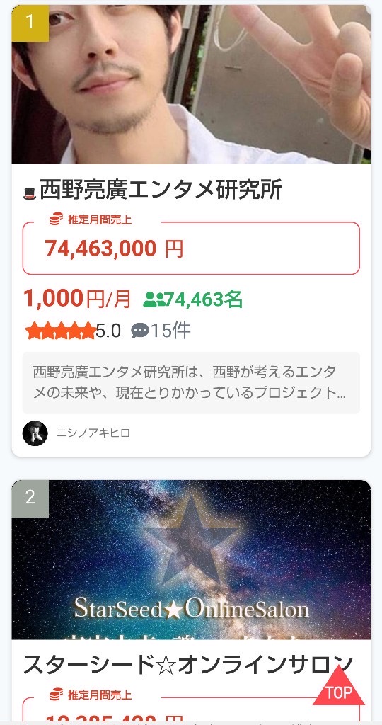 キングコング西野さんのオンラインサロン(月額1000円)、会員7万4千人www