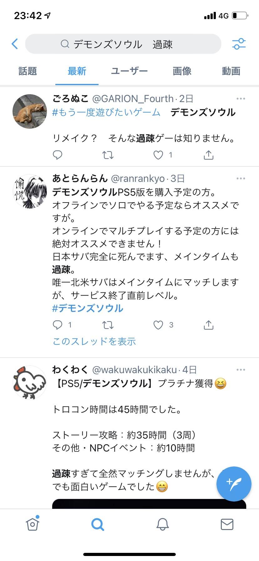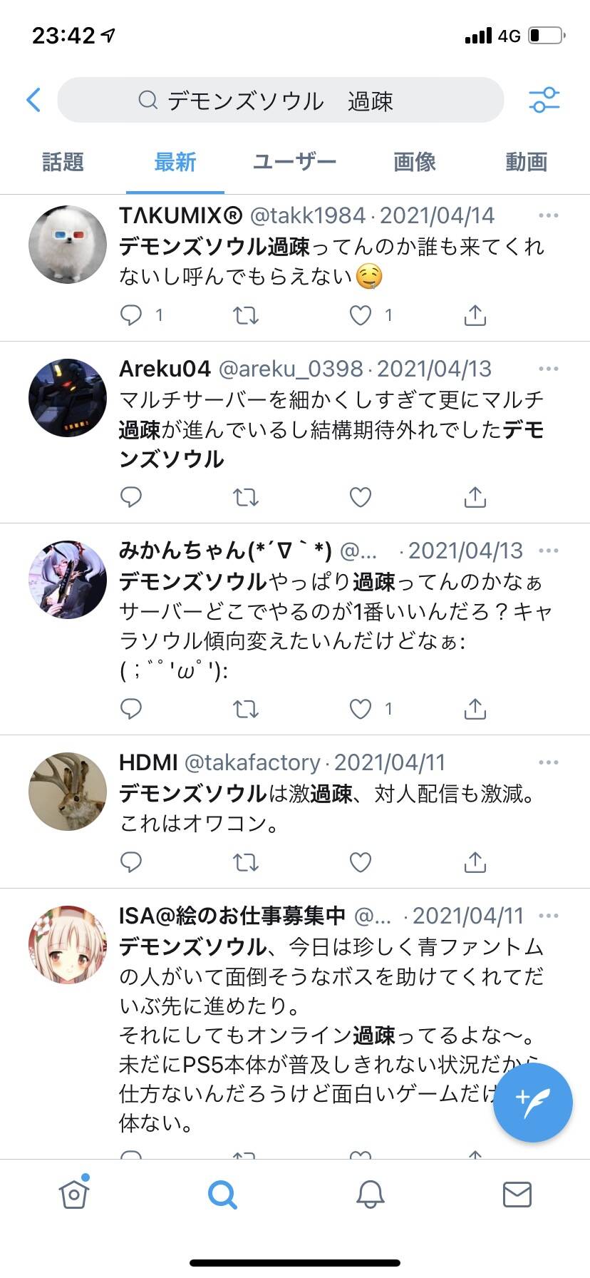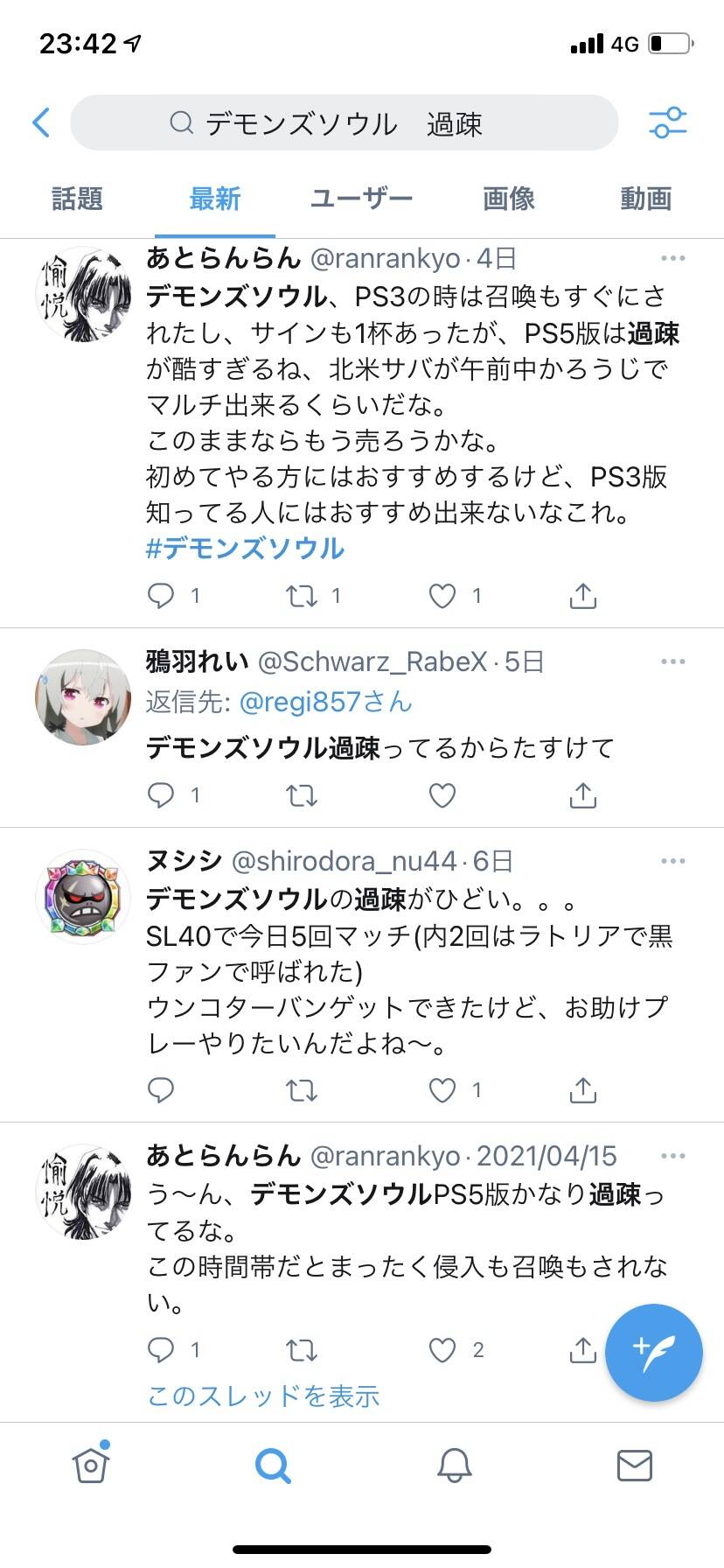 PS5でオンライン要素期待するのはもう無理なんだろうな…2:名無しさん必死だな:2021/04/22(木) 23:48:40.22 ID:YhU6O/RE0.netサーバーが多すぎるんだよ 減らせ3:名無しさん必死だな:2021/04/22(木) 23:51:07.34 ID:RTpixk/90.net間違ってモンハンなんか出してたらエライこっちゃだったな4:名無しさん必死だな:2021/04/22(木) 23:52:03.53 ID:guymG42Q0.net海外含めて過疎ってやばいな