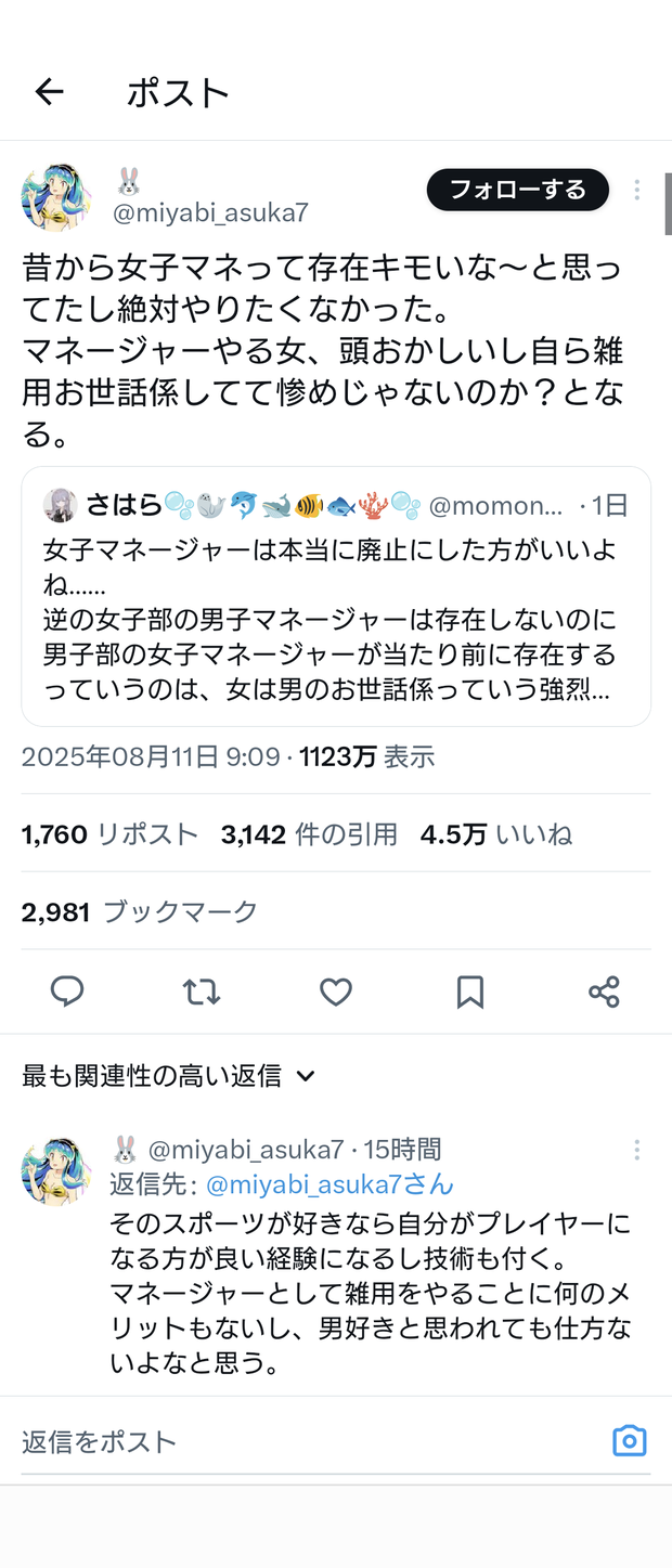 フェミ「ギャオオン!男子部活の女子マネージャーはキモイ!」