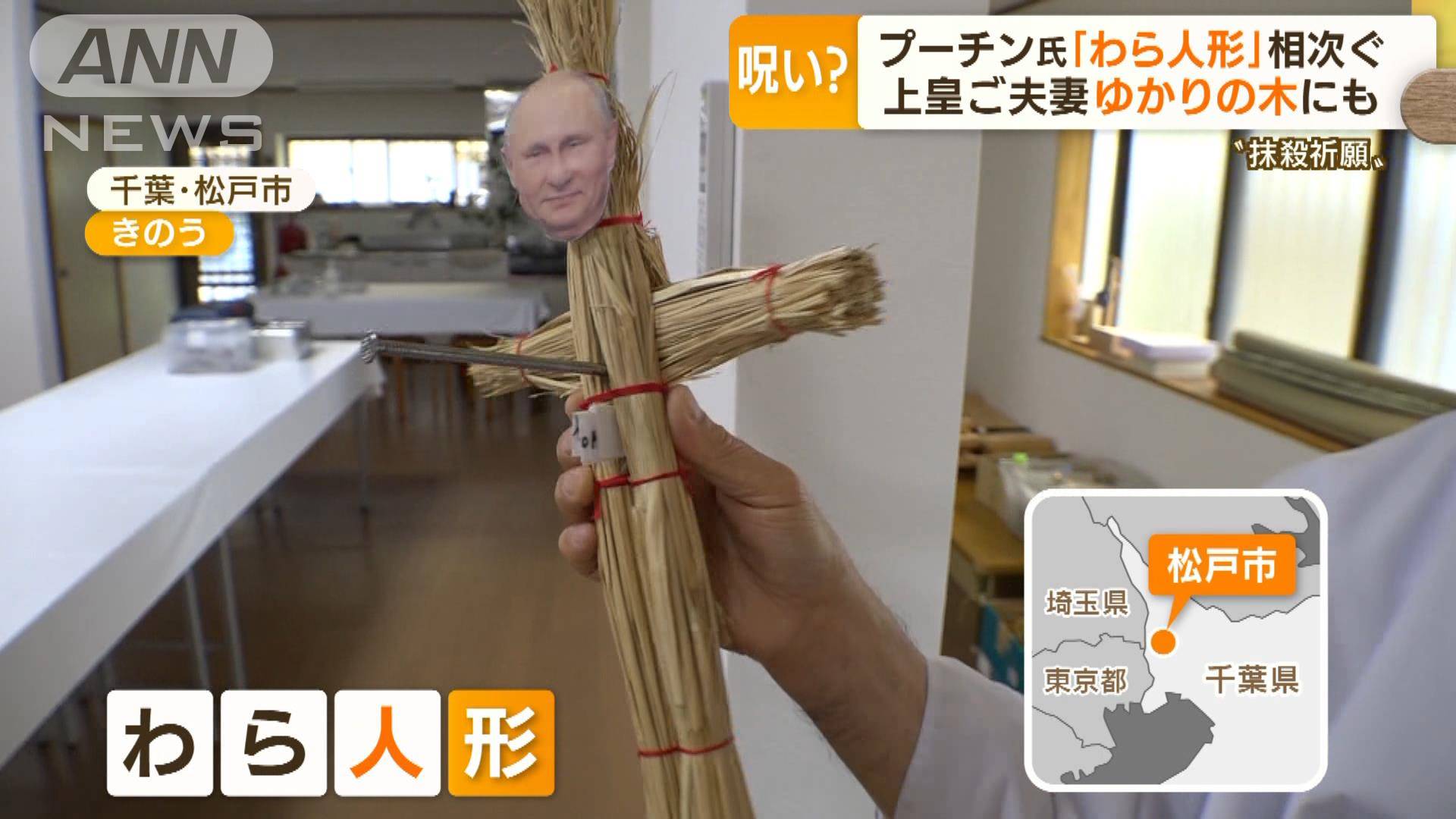 神社にプーチン氏写真付きわら人形 72歳を逮捕 器物損壊容疑などhttps://mainichi.jp/articles/20220615/k00/00m/040/293000c千葉県松戸市内の神社の木にロシアのプーチン大統領の顔写真を貼ったわら人形が相次いで打ちつけられた事件で、松戸東署は15日、同市五香西1、自称無職、日野充信容疑者(72)を建造物侵入と器物損壊の容疑で逮捕した。【悲報】プーチン大統領、呪われるhttps://t.co/F7uUTA80XL— VIPPERな俺 (@news23vip) June 9, 2022 続きを読む