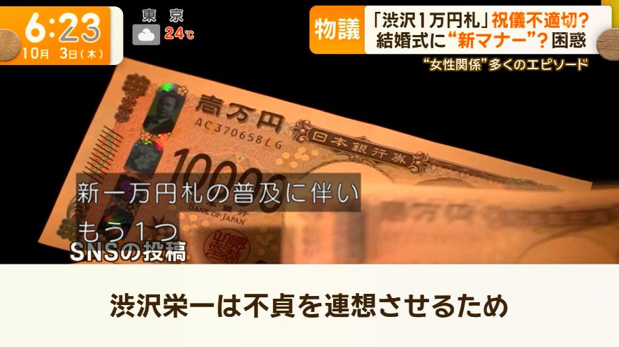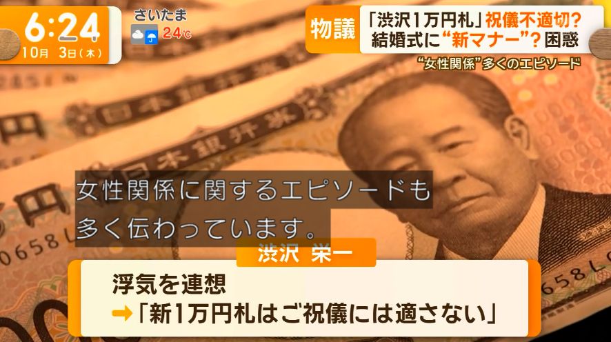 マナー講師「新札の渋沢栄一は不貞を連想させる為、結婚式で使うのはマナー違反です」