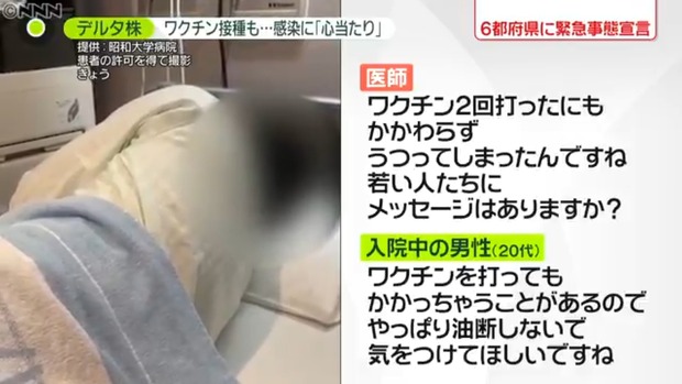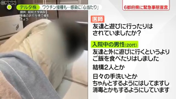 ワクチン2回摂取した20代男性、酒を飲みデルタに感染し入院