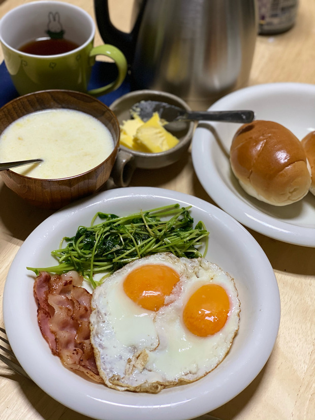 俺「ひろし~ごはんよ~」俺「わーい、ベーコンエッグだー」