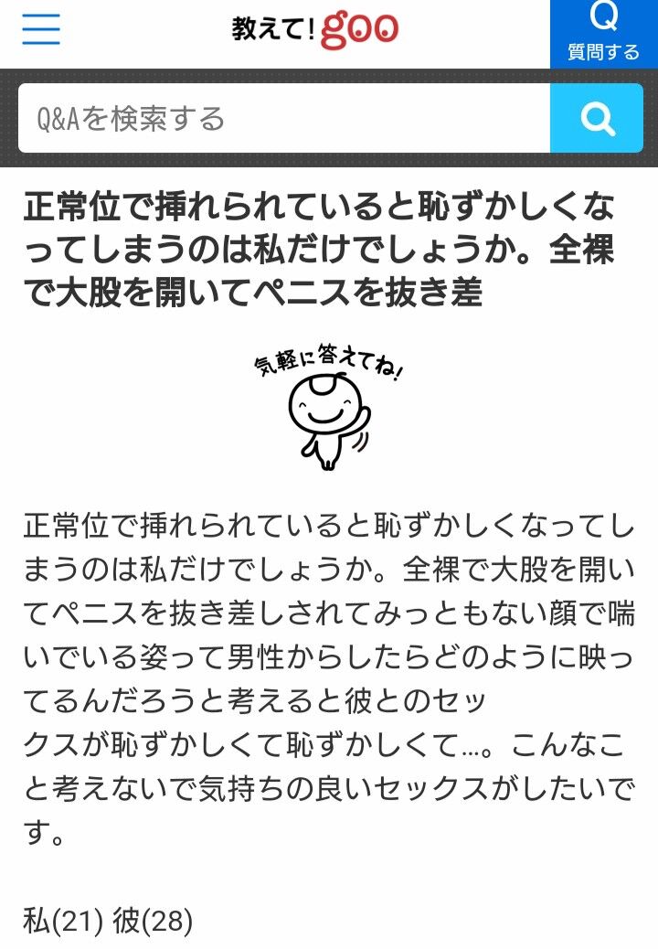 女さん(21)「正裳位で挿れられるのが恥ずかしいんです」