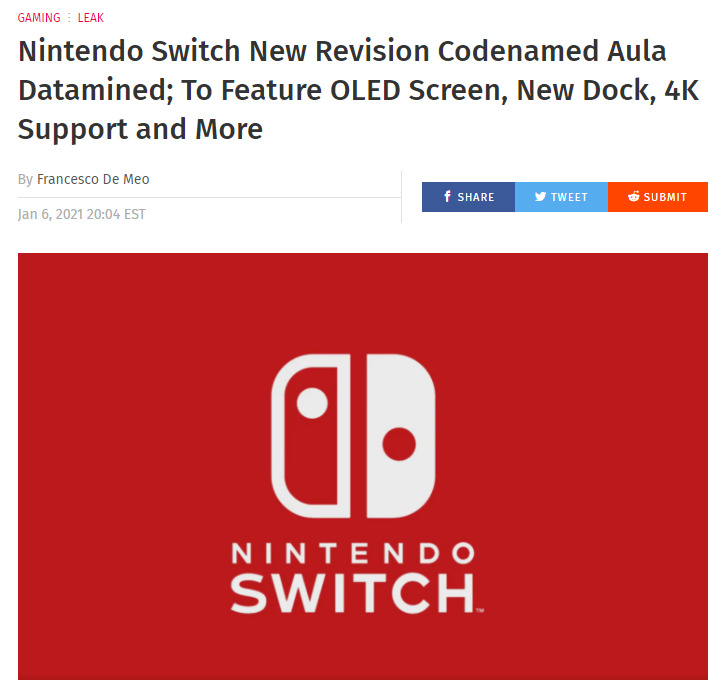 兼ねてより噂されている新型『Nintendo Switch』。一部では『Nintendo Switch Pro』とまで言われている新モデルだが、性能が向上したモデルとなるようだ。(省略)全文