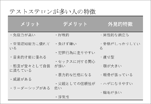 それは強い男性というのがオスの役割だからです。月経から排卵の間ではエストロゲンが分泌され女性は性欲が増強すると言われています、その間中では強いオスであるテステステロン(男性ホルモン)が高く分泌されてる男性を求める傾向があります。