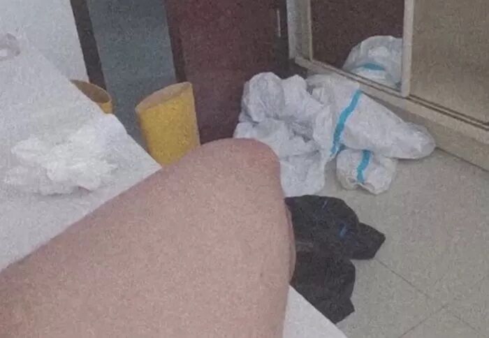 彼が投稿と一緒に公開した写真には脱いである防護服やティッシュなどが確認することができる。