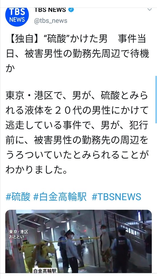 硫酸男、相手の勤務先から尾行した末にぶっかけ・・・