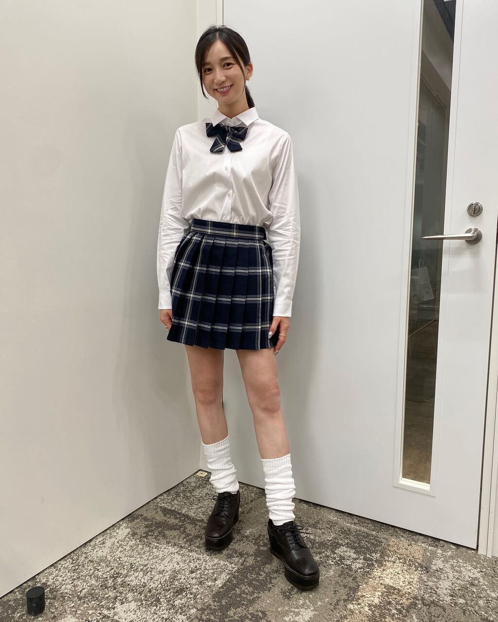 芹那さん(37)、ミニスカ女子高生制服姿を披露!!