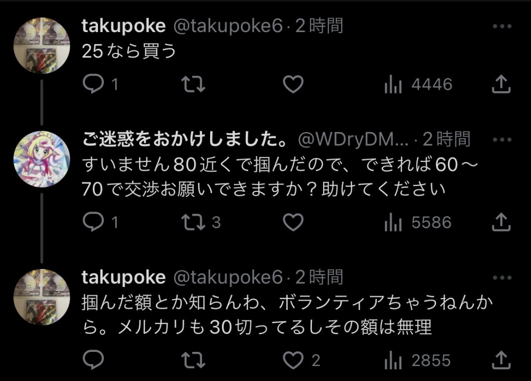 転売ヤー「助けて! 一枚80万で買ったポケカが値崩れしちゃったの!」