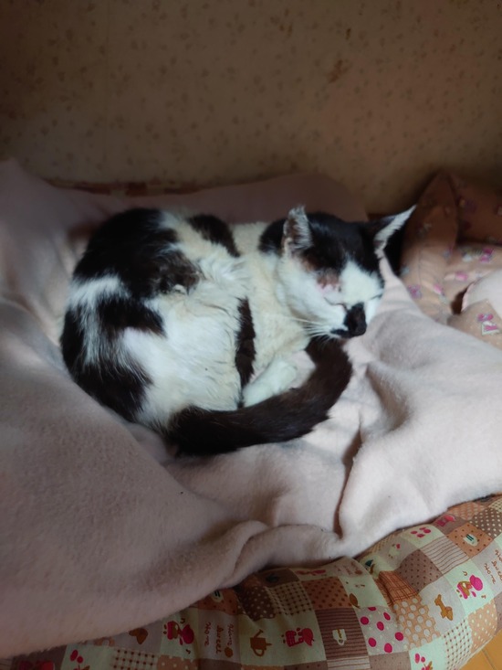 玄関で寝てた癖に入ってきて犬の寝床で寝てる