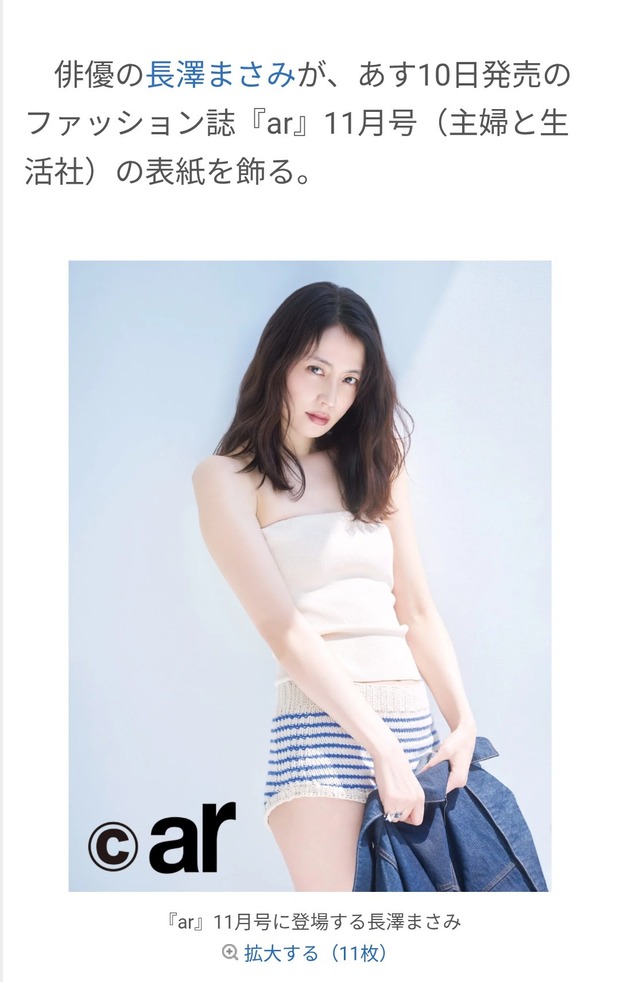 長澤まさみ、“国宝級美脚”輝く極上カット 『ar』記念号表紙にカムバック(オリコン) - Yahoo!ニュース