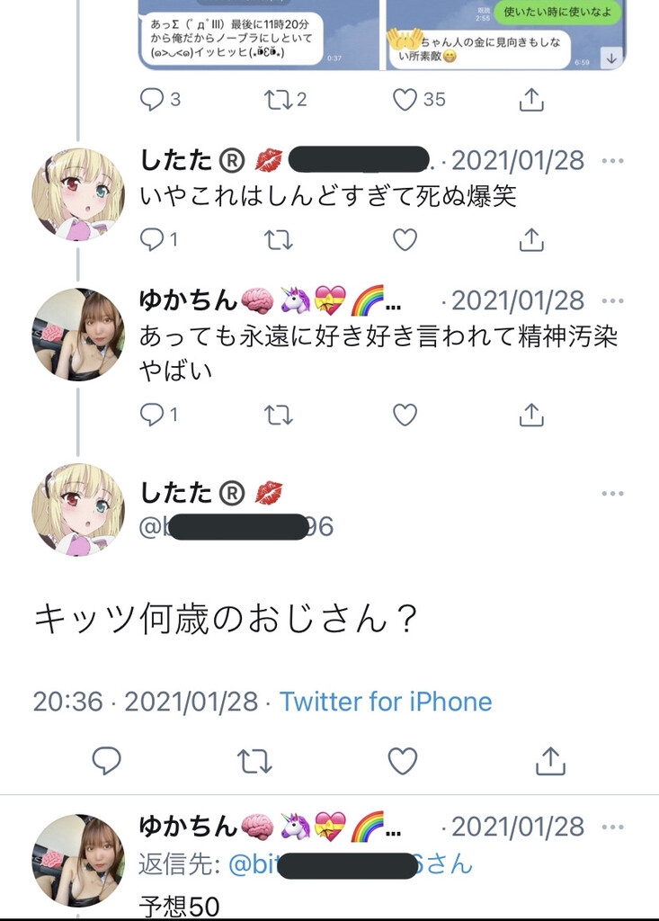 【画像】頂き女子に搾り取られたオッサンのLINE、キモいwww