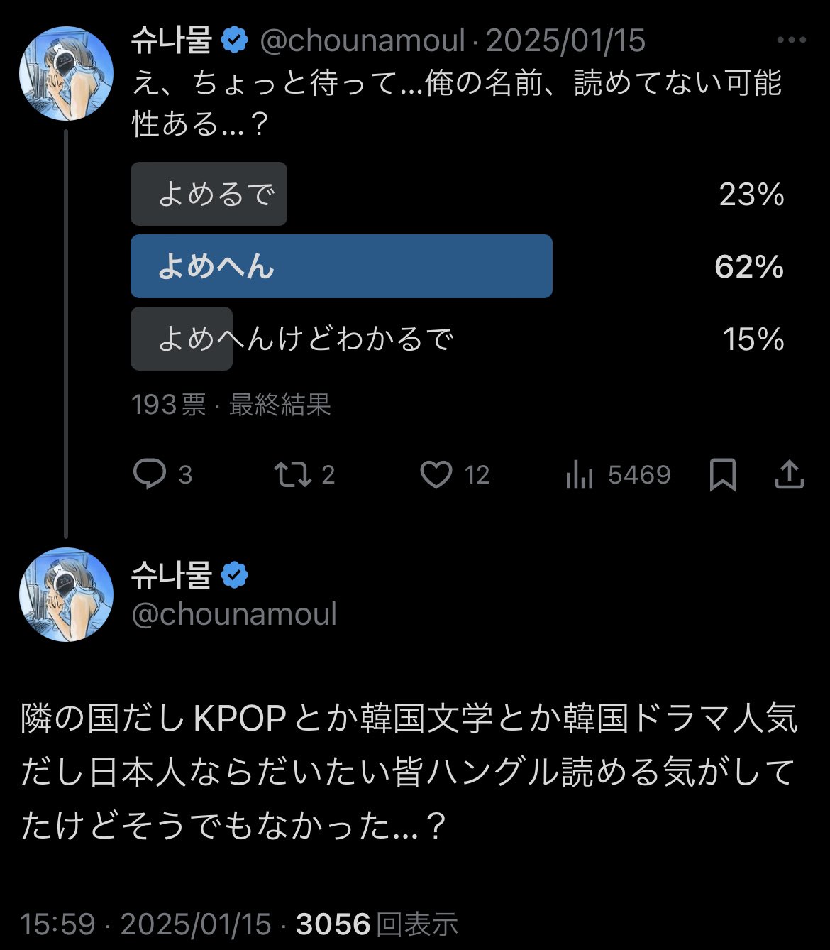 2 : 以下、?ちゃんねるからVIPがお送りします :2025/01/29(水) 14:36:55 ID:Nqn80XvQ0NIKU.net슈4 : 以下、?ちゃんねるからVIPがお送りします :2025/01/29(水) 14:37:24 ID:6Rx8p9bd0NIKU.net読める奴多過ぎだろ一般人に聞いたら1%も居ないぞ転載元スレッド:https://viper.2ch.sc/test/read.cgi/news4vip/1738128967/