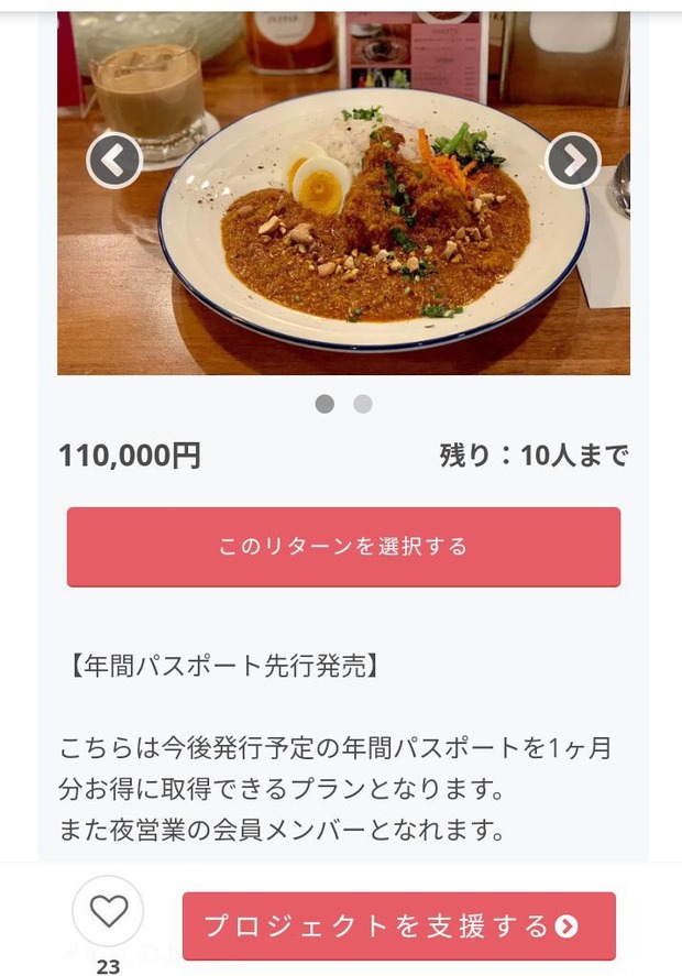 11万円でカレー1年間無料のパスポート カレー屋がクラファン開始