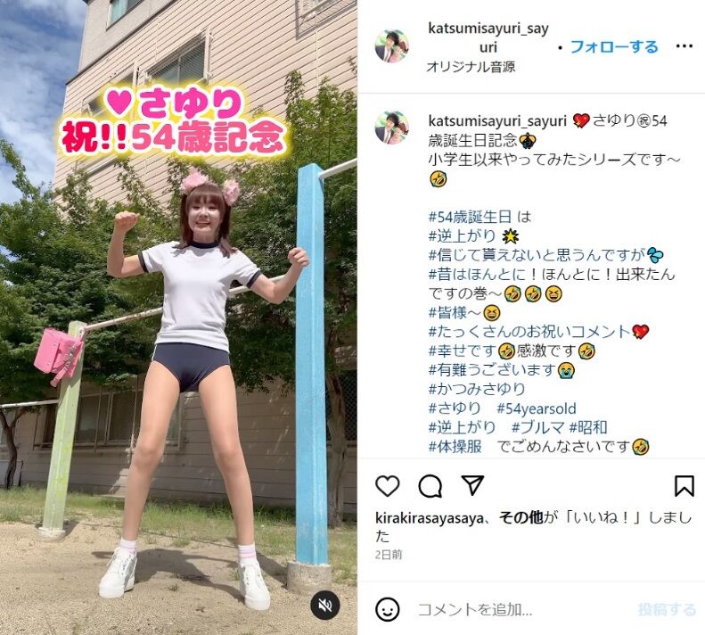 「かつみさゆり」のさゆりさん(54)、ブルマ姿を披露してしまう