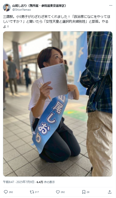 — 山尾しおり(無所属・参院選東京選挙区) (@ShioriYamao)