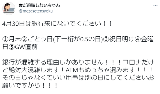 「4月30日は銀行に来ないで」銀行員がこう呼びかける衝撃理由が・・・