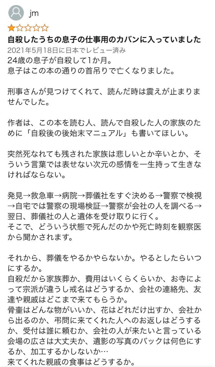 『完全自殺マニュアル』のAmazonレビュー欄、悲しすぎる