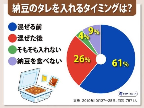 【悲報】「納豆のタレ」、先に入れる派が61%だった・・・