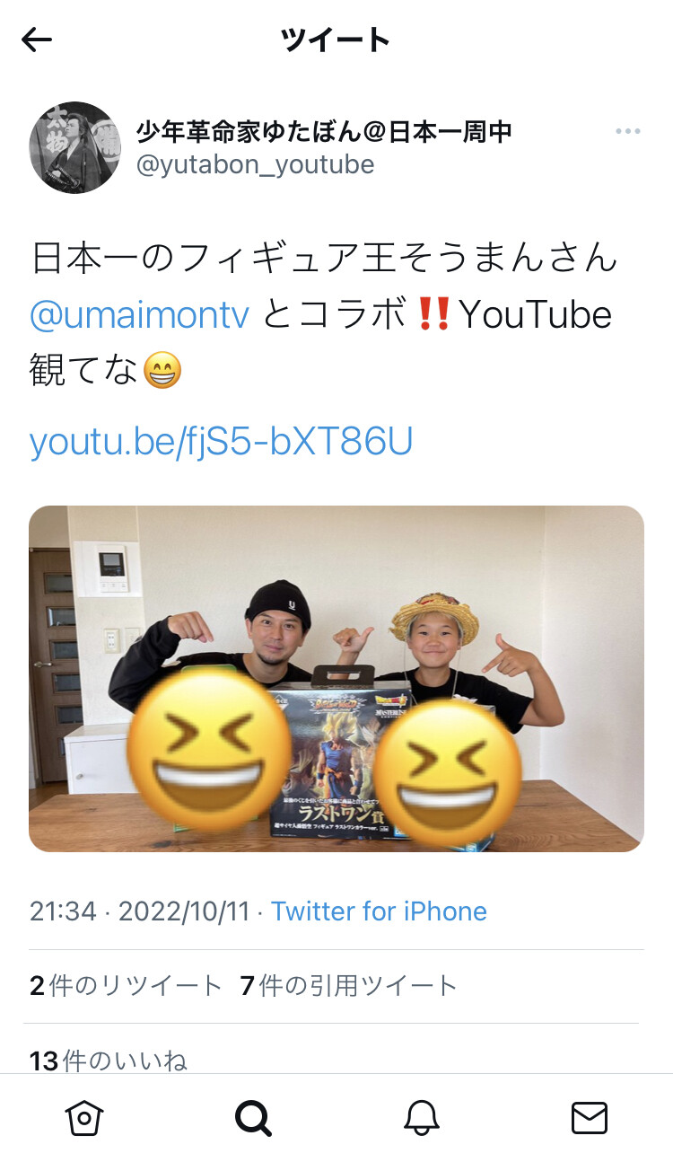 1 名前:名無しさん@おーぷん[] 投稿日:22/10/12(水) 11:56:02 ID:YtmDいくらなんでもこれはいかんでしょしかもこれ度数が高いワインです。私は飲んだことないですが大人でも刺激の強い酒だと聞くくらい恐ろしい物です。しかもそれを親や支援者も含めて容認していたのがとても危険と感じました。これ警察案件ですよ。#ゆたぼん #中村幸也 #中村逞珂 #スタディ号 #ゆたぼん号— 日本の教育の動態が気になるアライさん (@araisan_invest) October 11, 2022