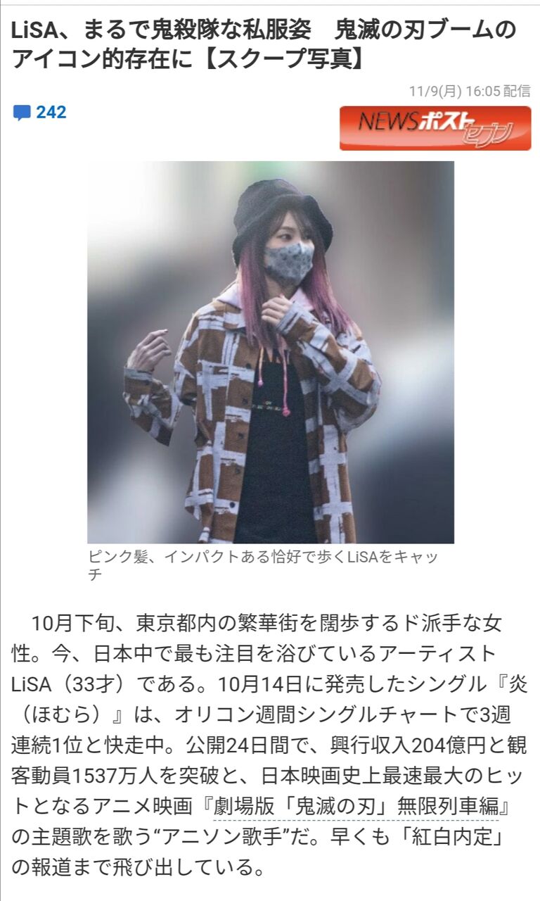 【悲報】アニソン歌手LiSAさん(33)の私服姿が盗撮される