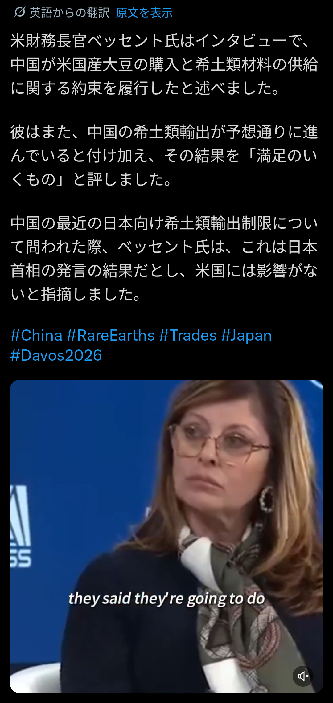 【悲報】アメリカ「中国のレアアース禁輸は高市の発言せい、うちには関係ない」