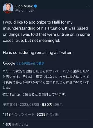 【速報】イーロン・マスク「週80時間働けないやつ、twitter社に必要ないですw」
