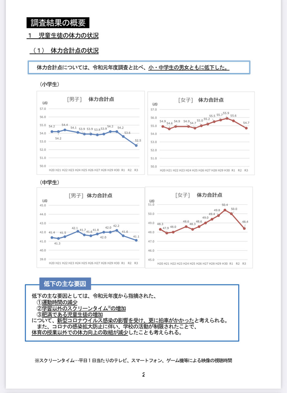 全国体力テストは大幅に右肩下がり