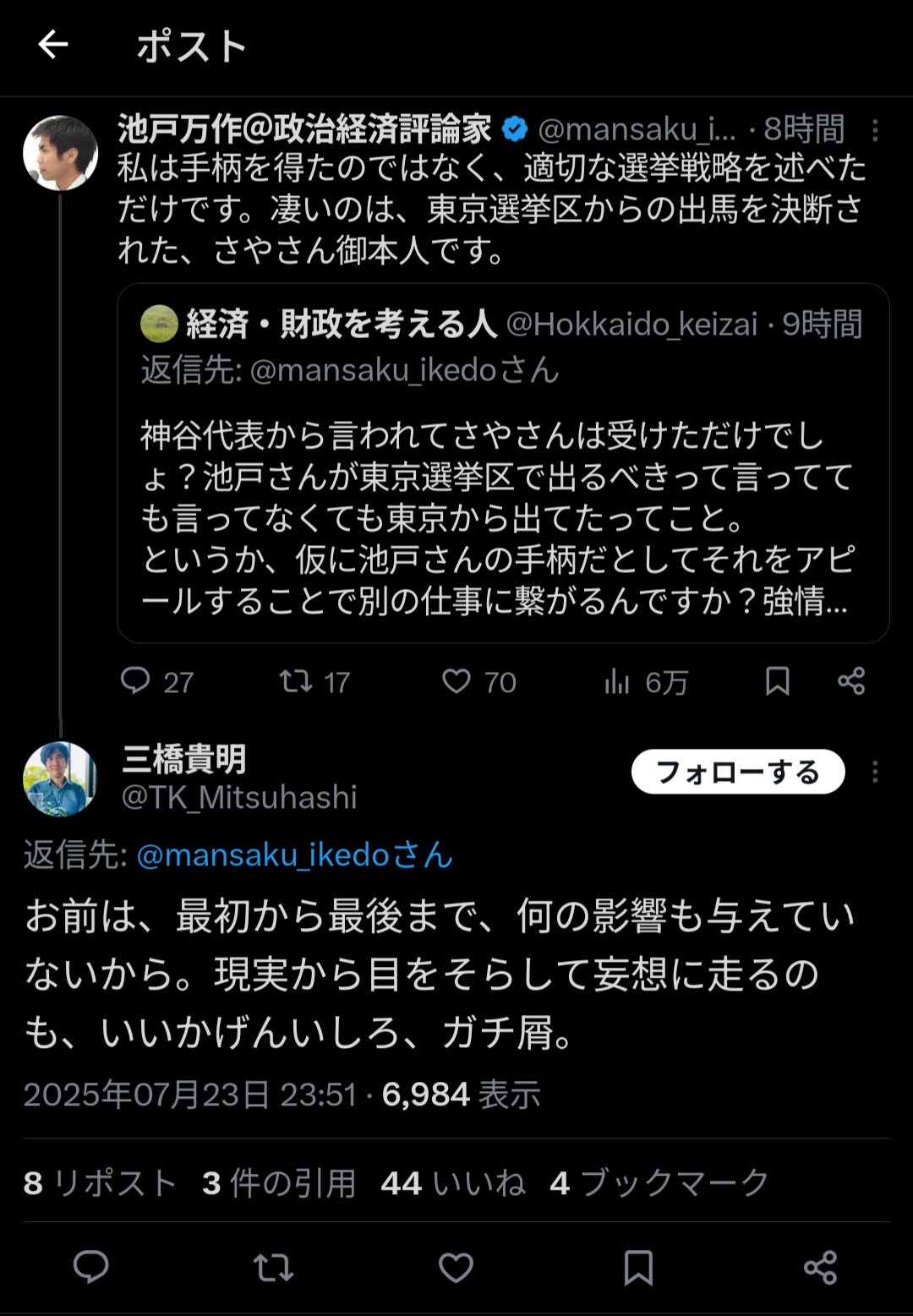 【悲報】参政党おじ、さやママを奪い合って荒れる