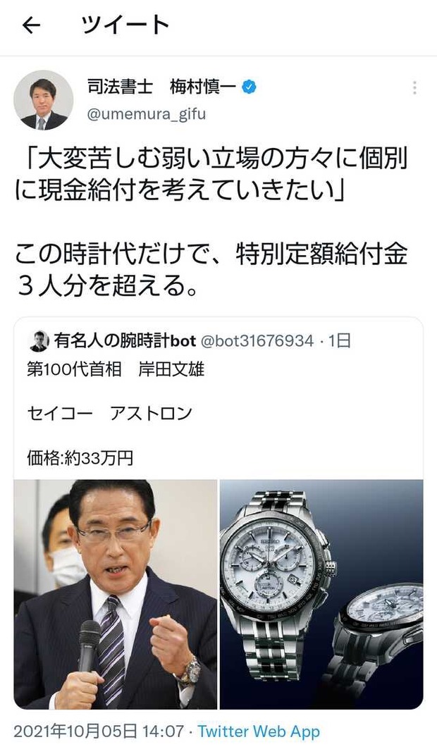 2 : 風吹けば名無し :2021/10/07(木) 02:19:51.94 ID:G+ivL31Qp 税金腕時計かよ…3 : 風吹けば名無し :2021/10/07(木) 02:20:16.20 ID:G+ivL31Qp 腕時計は千円までってワイらと約束したやろが4 : 風吹けば名無し :2021/10/07(木) 02:20:31.33 ID:0qDXXPRca 国産で安心した5 : 風吹けば名無し :2021/10/07(木) 02:20:32.19 ID:BaYyKo7ud これは高度なバカパヨク煽りスレ転載元スレッド:https://swallow.5ch.net/test/read.cgi/livejupiter/1633540775/