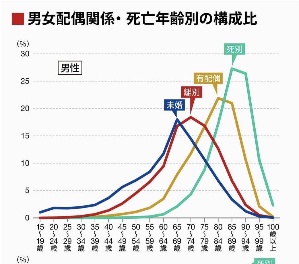 【画像】独身男性の平均寿命が若すぎると話題に・・・・・