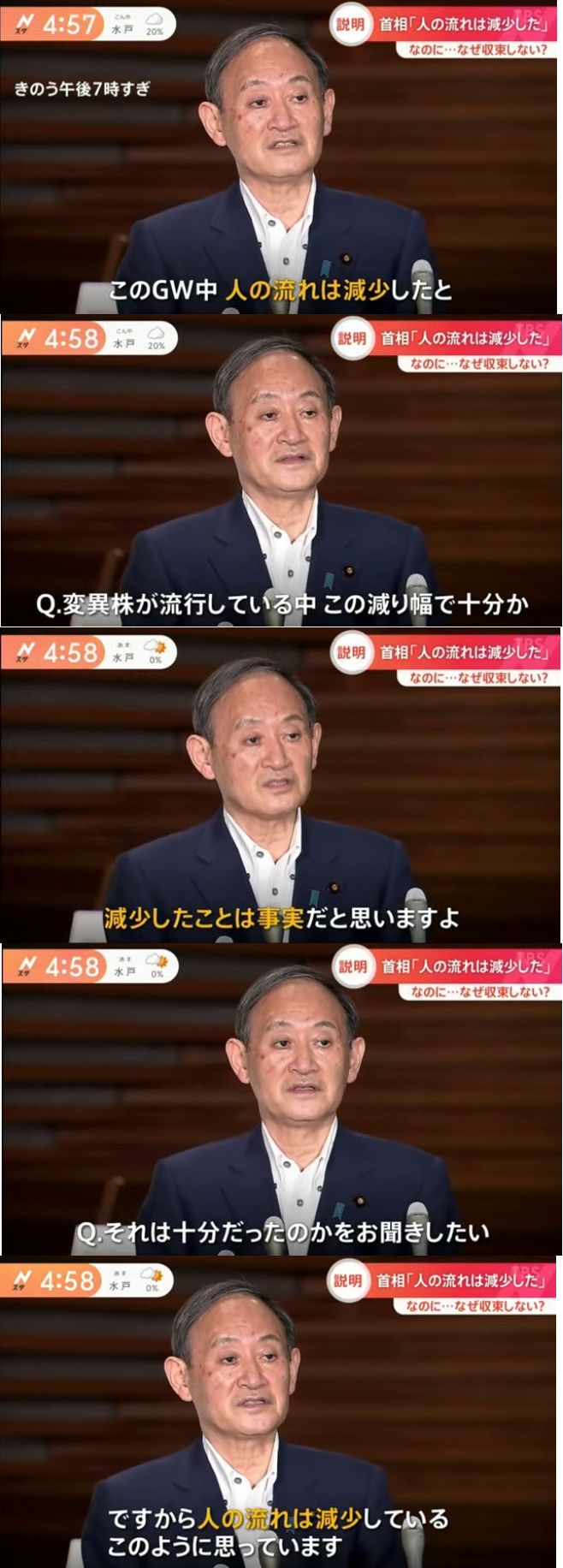 【悲報】菅首相、夜に官邸入り、コロナ変異種対応協議した結果「水際対策しっかりして」の指示のみ