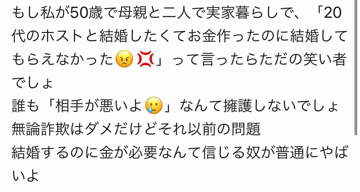 19 名前:名無しさん@おーぷん[] 投稿日:24/05/10(金) 16:55:54 ID:3IR2りりちゃんの時といい被害者が弱男なの答え合わせされていくの笑えるけどかわいそう30 名前:名無しさん@おーぷん[] 投稿日:24/05/10(金) 16:58:39 ID:vSBh男の価値も16歳をピークに右肩下がりだからな金はあくまでも付加価値で代用が効くならわざわざオッサンなんかと結婚する理由はない34 名前:名無しさん@おーぷん[] 投稿日:24/05/10(金) 16:59:12 ID:UybMしょーもない小娘に引っかかって身を滅ぼすのも漢の花道破滅願望は誰の心にも潜んでるはず続きを読む