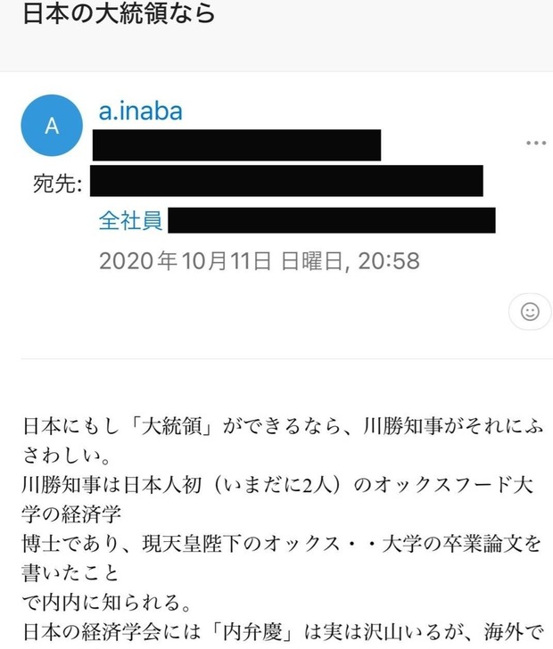 〈ロシアに小国ウクライナが勝てるわけない。勝ったと思った瞬間に、核が炸裂するであろう〉いなば食品の社長(70)が全社員に送りつけた“怪メール”公開「『社長のツイッター』と揶揄されています」「週刊文春」編集部 新入社員へのボロ家ハラスメントや工場の食品衛生法違反、社長による猫ネグレクトなど次から次へと問題が噴出する、缶詰製造大手のいなば食品。「週刊文春」編集部には、電子版で第1弾の記事を配信した4月10日以降、同社の社員や関係者らから無数の情報提供が寄せられている。(省略)全文