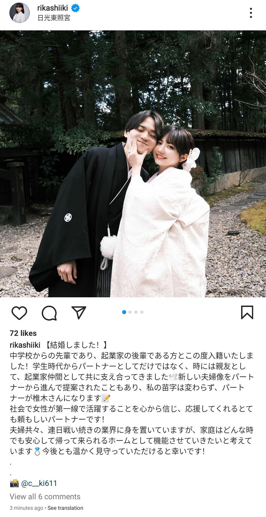 【朗報】元JK社長の椎木里佳さん、イケメンと結婚wwwwwwwww